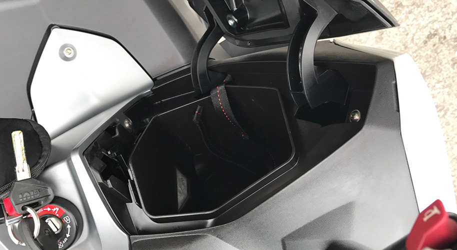 Con capacidad para dos cascos bajo el asiento (Sistema flexcase by BMW), además de tener dos guanteras portaobjetos bajo la columna de la dirección. El acabado Sport posee el nivel más alto de equipamiento para éste modelo. Esta unidad tiene muy poco kilometraje. Excelente oportunidad de compra ahora que empieza el buen tiempo!